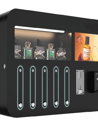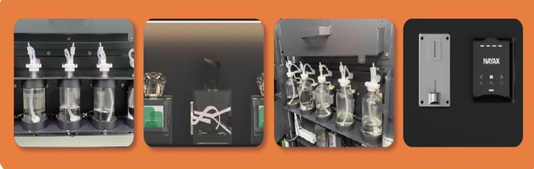Distributeurs automatiques de parfums pour un usage professionnel, intégrés dans un système pour accompagner les exploitants.